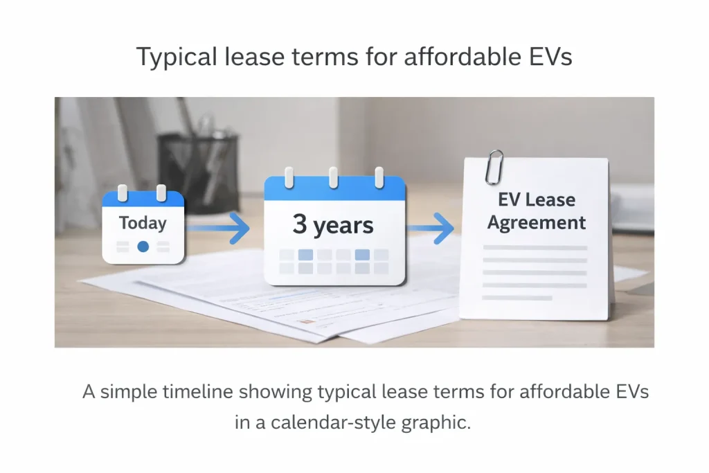Most affordable EV lease deals range from 24 to 36 months. Mileage limits typically fall between 10,000 and 12,000 miles per year, which suits many commuters.