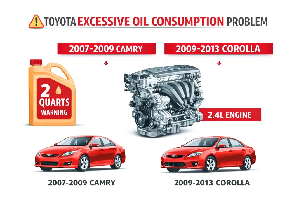 Toyota built a reputation on reliability that’s mostly deserved. However the 2007-2009 Camrys and 2009-2013 Corollas with 2.4L four-cylinder engines burn oil like my first car burned through teenage stupidity. Toyota faced class action lawsuits over this and extended warranties to 10 years or 150,000 miles on affected vehicles.