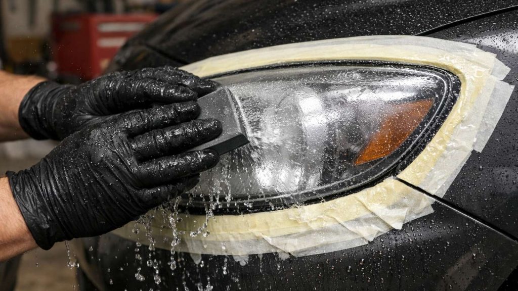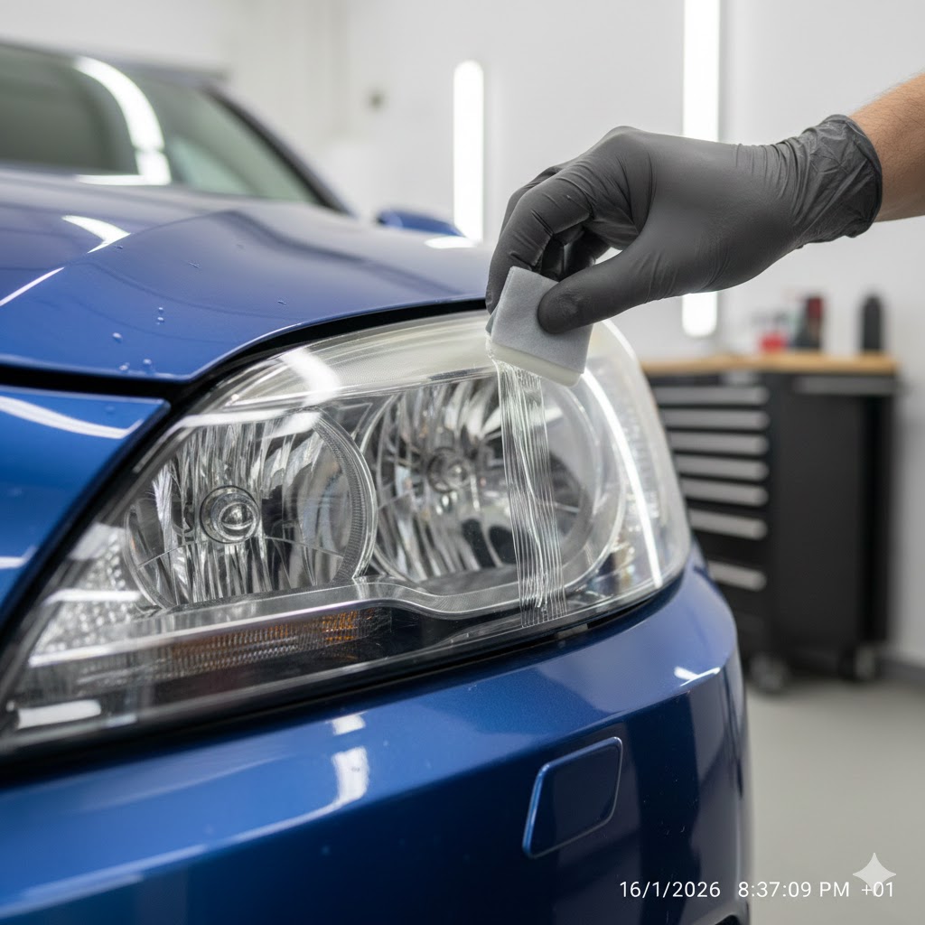 DIY headlight restoration is not simple cleaning. True restoration involves correcting surface damage and reapplying UV protection to restore optical clarity and prevent rapid re‑oxidation.