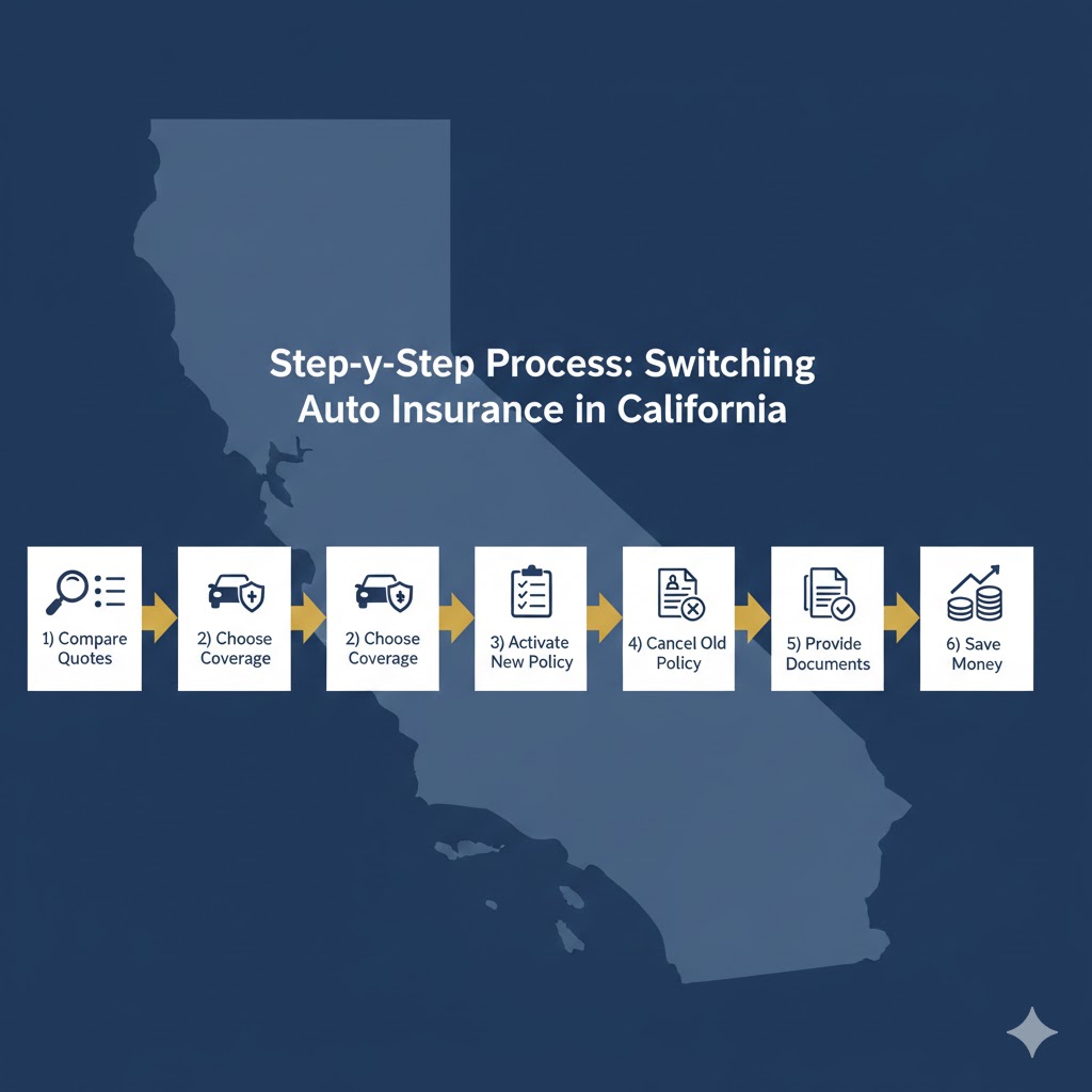 This pillar article explains how to switch auto insurance providers in California step by step, including legal considerations, timing strategies, documentation requirements, common mistakes, and how switching impacts discounts, claims history, and long-term premiums. It is designed as an authority resource for drivers and as a cornerstone article for automotive insurance niche websites.