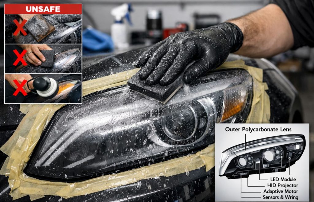 Is sanding modern headlights dangerous?