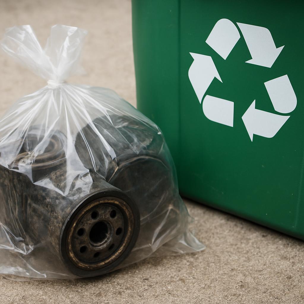Oil filters also need safe disposal. They hold old oil inside even after draining. Many auto parts stores and recycling centers accept both oil and filters. Before disposal, let the filter drain for several hours into your drain pan. Then place it in a sealed plastic bag. Some states require filters to be recycled as scrap metal. The center will handle that part.