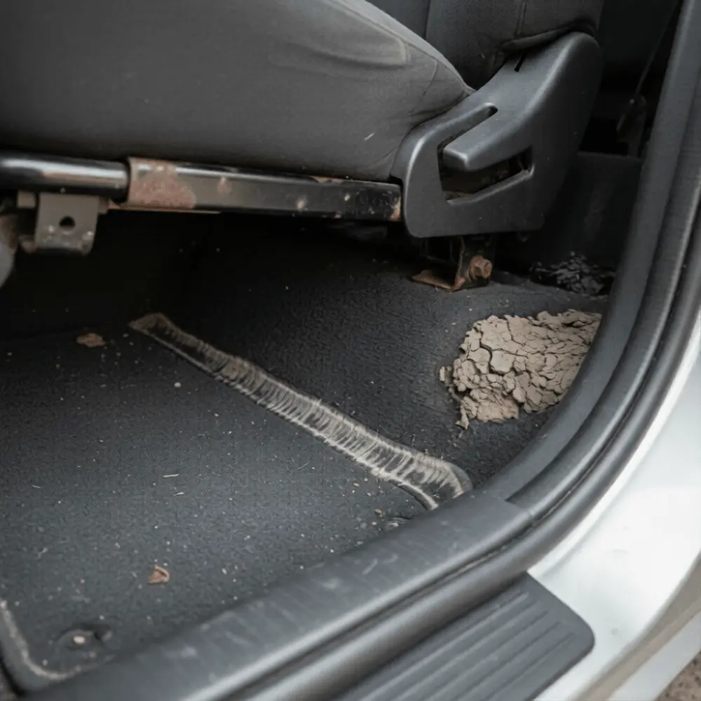 - Mud or silt residue in the spare tire compartment